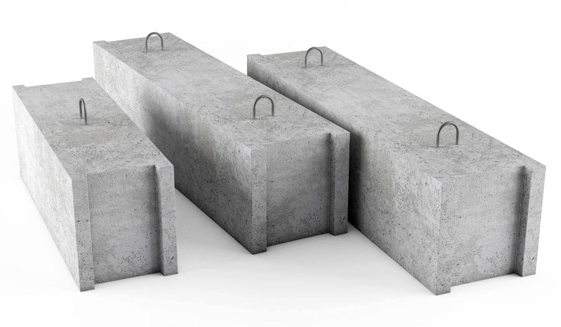 - Железобетонные блоки (Железобетонные ФБ) — внутри заложен арматурный каркас, что повышает прочность на изгиб и сжатие.
