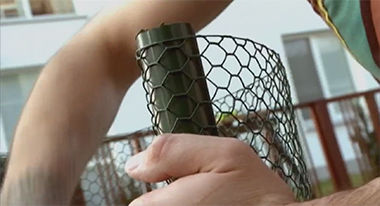 Проволочный забор связан с торчащими металлическими прутьями. Для того, чтобы их сжать существуют специальные обжимные клещи. На каждой стойке выполняется несколько мест, где сетка будет плотно натянута.