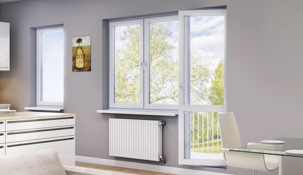 Можно увидеть обычную распашную конструкцию, встроенную в общий оконный блок. Или она сама является панорамной. Чаще всего применяются штульповые двери. Когда проем превышает по ширине 900 мм, в первую очередь задумываются о таких моделях.
