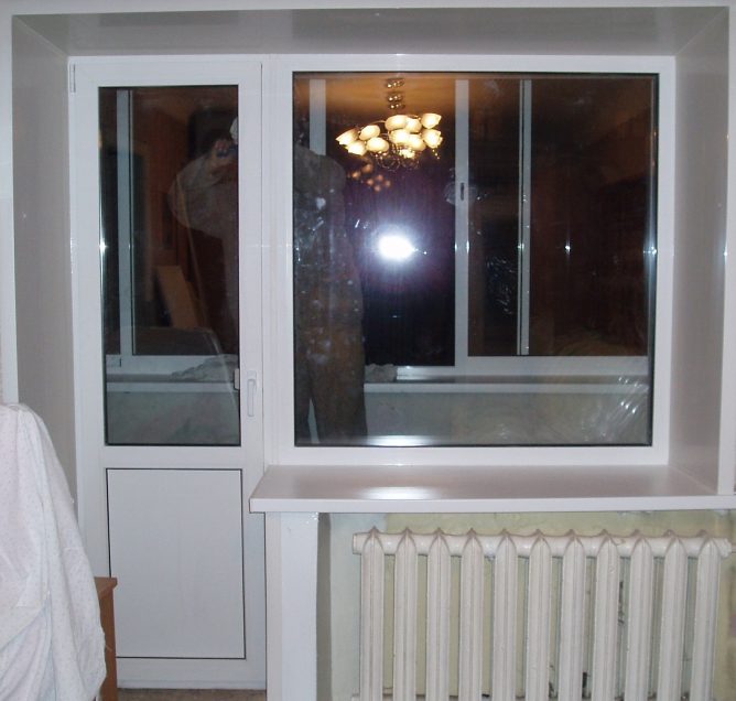 Первая – если имеется отдельно стоящая балконная дверь старого образца, выполненная из дерева, то при замене по соседству с деревянной рамой будет новенькая пластиковая створка, которая потеряет свою привлекательность. Конечно же, можно заказать дверь из цветного профиля оттенка оконной рамы. Но практичнее менять окно и дверь в одно время, так как не придется повторно делать ремонт в комнате и вымывать строительный мусор.