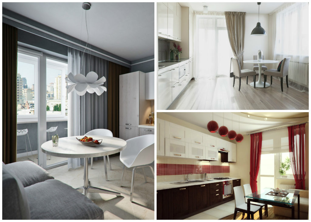 Учитывайте, что кухня с балконом будет иметь намного меньший поток солнечного света, чем комнаты с обычными окнами. Это влечет необходимость выбирать светлые шторы либо полупрозрачные. Темные шторы же будут еще сильнее омрачать помещение.