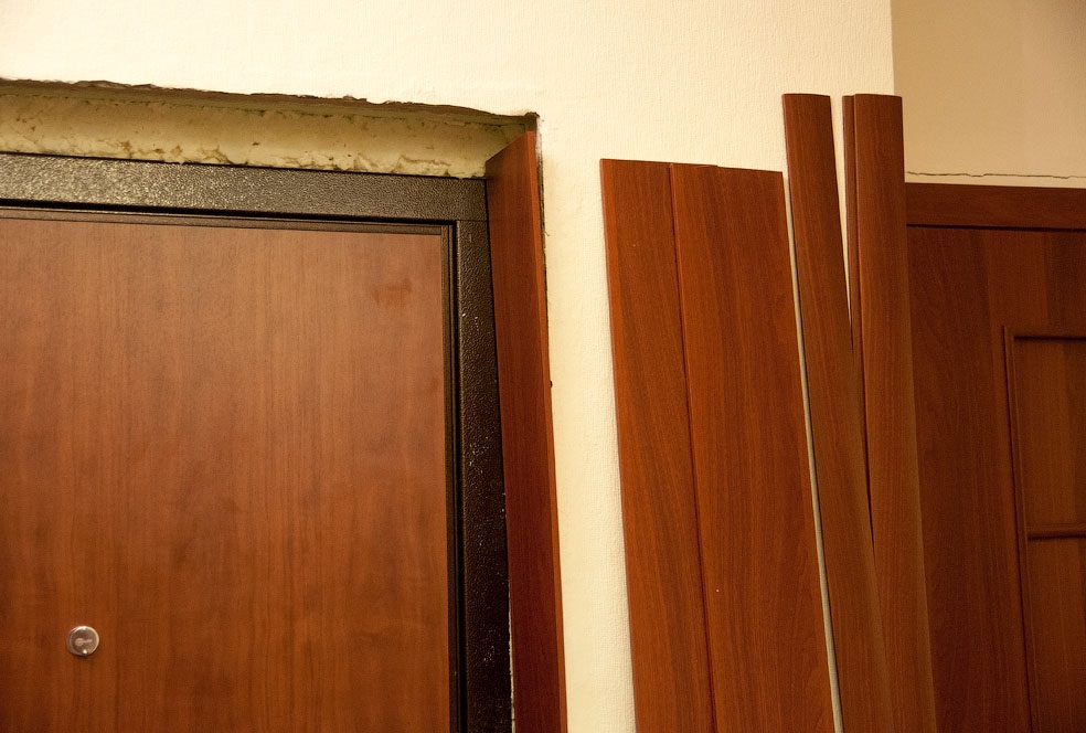 Есть и стальные наличники или алюминиевые. Но обычно их устанавливают только снаружи входной двери.