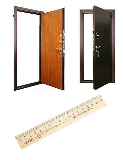 - Толщина. Здесь конкретного стандартного показателя нет, она может быть разной. Толщина влияет на надежность двери во время взлома недоброжелателями, а также на показатели звуко- и теплоизоляции. Чтобы правильно подобрать необходимую толщину двери, необходимо учитывать толщину коробки, а также стен, и исходя из этого приобретать подходящую входную металлическую дверь.