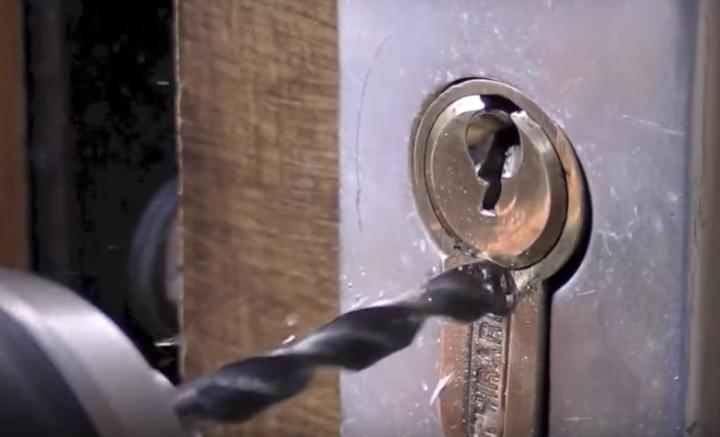 Как только почувствовали, что дошли до последнего пина, смените сверло на более толстое. Это позволит высверлить личинку замка до полного разрушения пинов. Как это сделать на примере входной двери, показано на видео ниже.