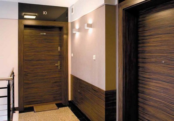Деревянные двери из плотных пород дерева являются хорошими звукоизоляторами благодаря качествам природной древесины. Но обычно для устранения проникновения в квартиру посторонних звуков хорошей деревянной двери недостаточно, для обеспечения полного комфорта требуется дополнительно провести шумоизоляционные работы. Для этого достаточно произвести обивку полотна специальными материалами с внешней стороны, для получения максимального результата – с обеих сторон.