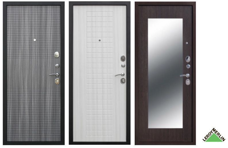 Железные двери в магазинах “Леруа Мерлен” по конструкции мало чем отличаются друг от друга. Все различия в фурнитуре и отделке. Среди брендов широко представлены отечественные производители такие как “Гарант”, “Троя”, “Doorhan», «Гардиан».