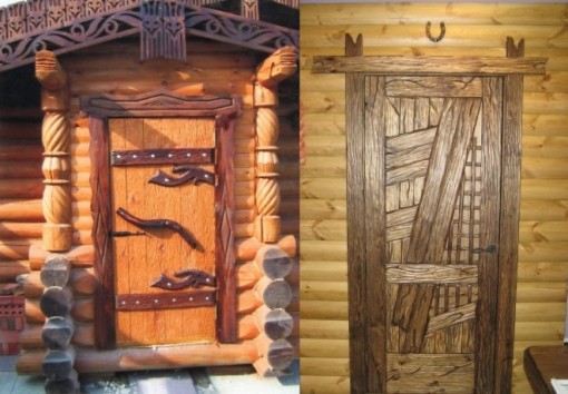 Для тех, кто ценит стиль, можно отыскать очень интересные модели дверей для бани, украшенные различными декоративными элементами, резьбой. Также можно выбрать полотно попроще – такие двери чаще со сплошной поверхностью.