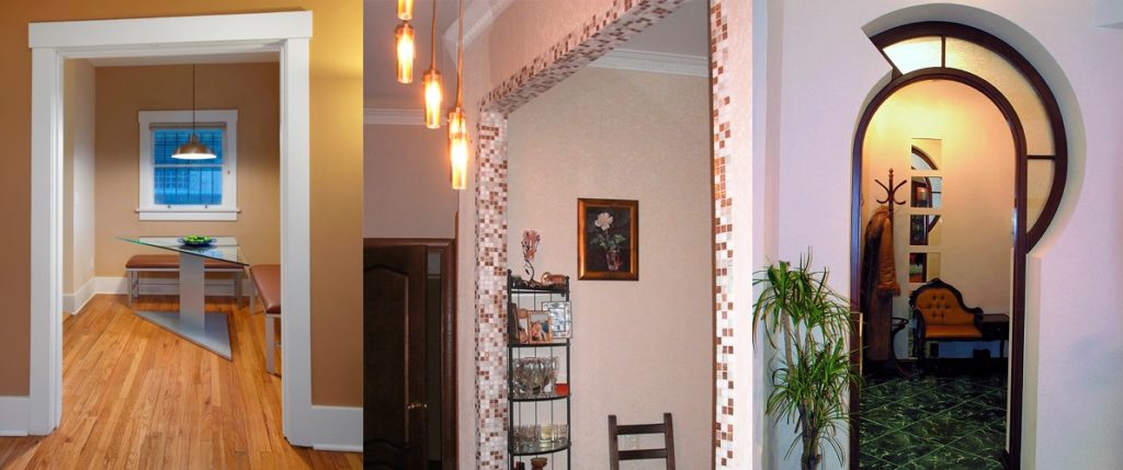 Разнообразие и доступность строительных отделочных материалов породило множество вариантов как задекорировать дверной проем двери. На выбор отделки влияет предназначение прохода без двери – будет ли он гармоничным продолжением одной комнаты в другую или станет ярко выраженной, четкой границей между помещениями.