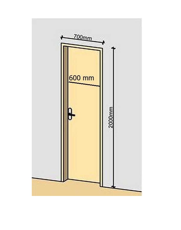 Чтобы правильно вымерять проем, необходимо заранее знать, какая конструкция будет в него устанавливаться. Таким образом, если в наличии накладная одностворчатая дверь с стандартными размерами в 600×2000 мм, то проем должен быть с такими величинами – 680×2020 мм. Необходимо оставить технологичные зазоры в 80 мм по ширине и 20 мм по высоте.