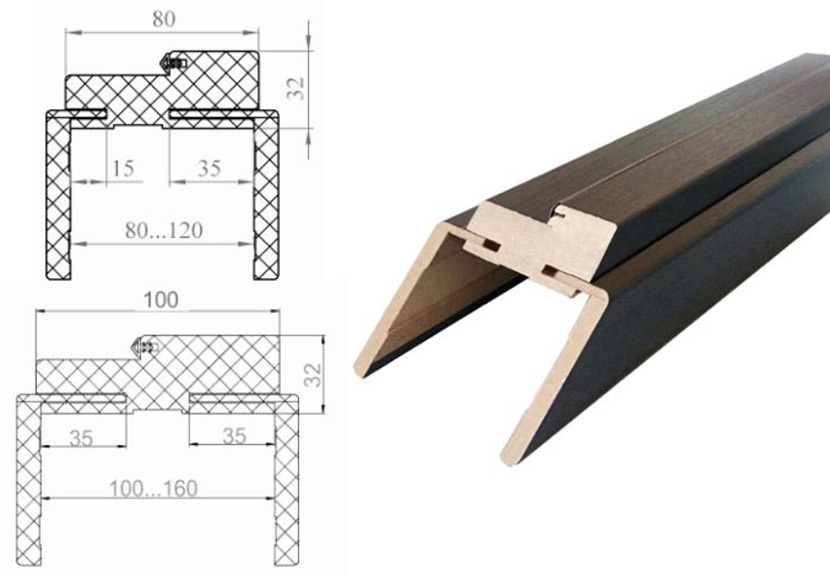 - Охватывающий вид конструкции, состоящей из коробки, наличников и доборной доски, которые устанавливаются в проем поочередно;
