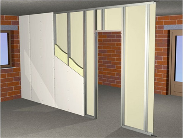 В том случае, если дверь в гипсокартонной перегородке будет не распашного, а раздвижного типа, на участке движения полотна при его открытии утепление не производится.