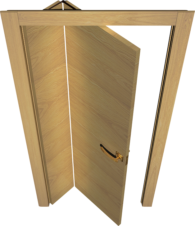 Необходимо упомянуть, что существует и складная межкомнатная дверь, не обладающая встроенным механизмом раздвижения. Соединение створок представлено специальным петлями, позволяющими складывать дверь в необходимом порядке. Такой вариант в нашей стране встречается очень редко.