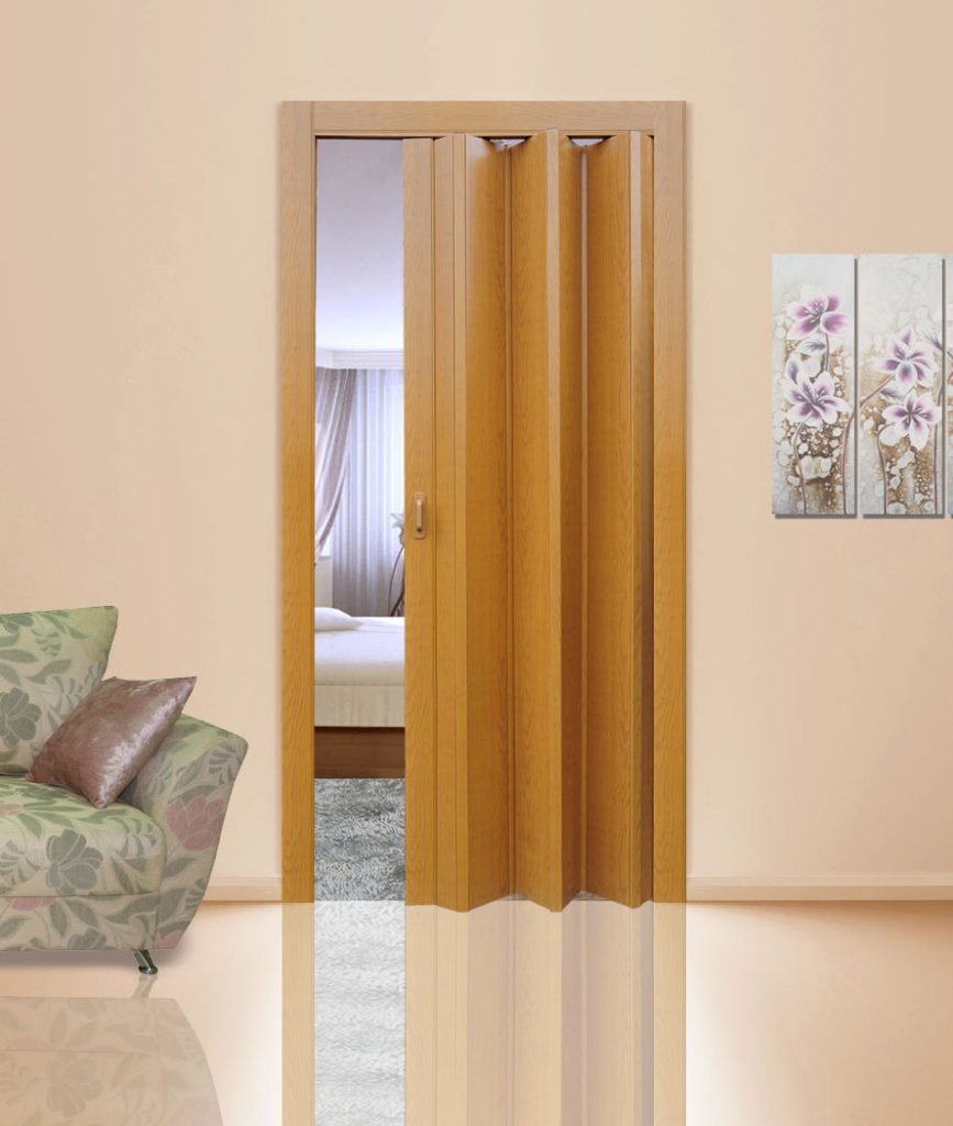 Не так давно дверь гармошка считалась атрибутом малогабаритных дверных проемов. Однако благодаря стараниям дизайнеров данная конструкция не просто позволяет существенно экономить пространство жилья, но и является достойным элементом интерьера, а иногда даже его украшением. Так на рынке дверных конструкций двери гармошки могут обладать широчайшим ассортиментом цветов и стилей оформления. Кроме того, в процессе создания могут использоваться различные материалы, основными из которых являются МДФ листы либо пластик.