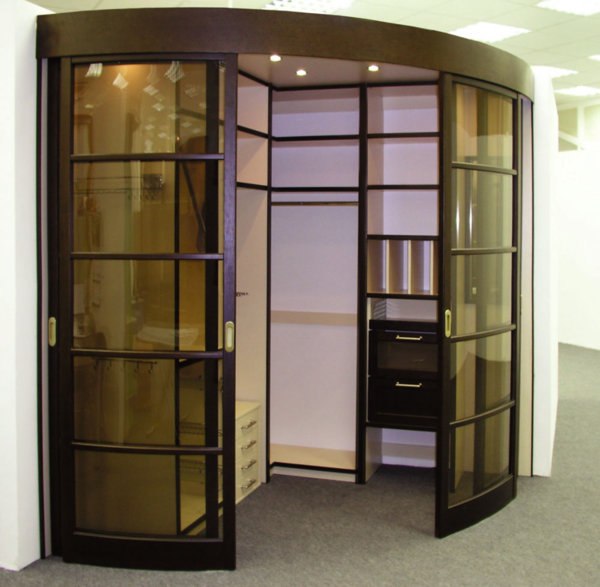 Радиусные перегородки очень привлекают своим профилем. Благородя ему радиусные двери, к примеру, для гардеробной, позволяют создать уникальные формы, украшенные витражами с роскошной отделкой.
