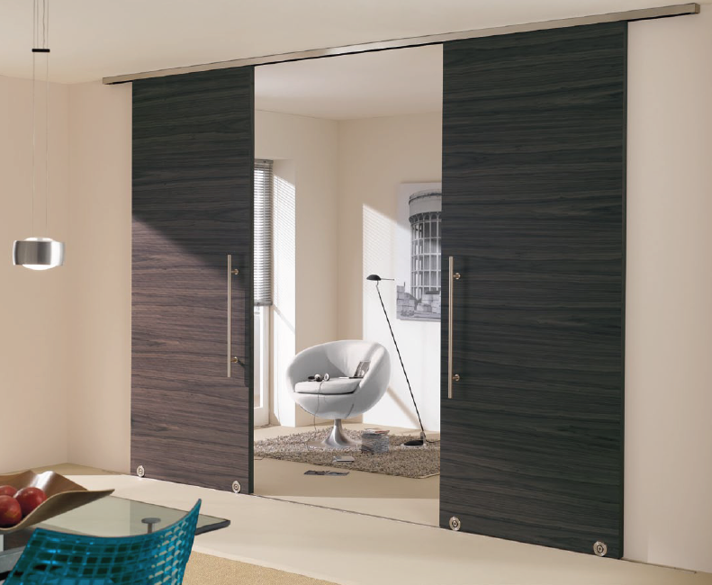 Также к фурнитуре для раздвижных дверей относятся цилиндрические элементы, которые позволяют при помощи лёгкого нажатия пальцам начать движение дверной панели.