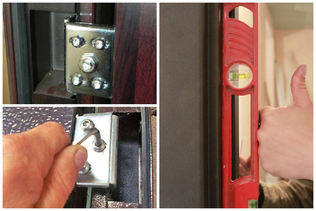 В первой ситуации необходимо отрегулировать петли. Для этого створку приподнимают и подтягивают регулировочные болты, размещенные на навесах.