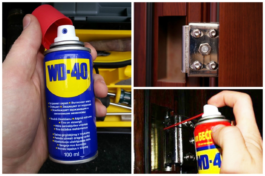 Если же вы выбираете, чем лучше смазать подъездную или тамбурную дверь, которая эксплуатируется только при плюсовой температуре, тогда рекомендуется использовать смазку WD-40 или стандартное машинное масло.