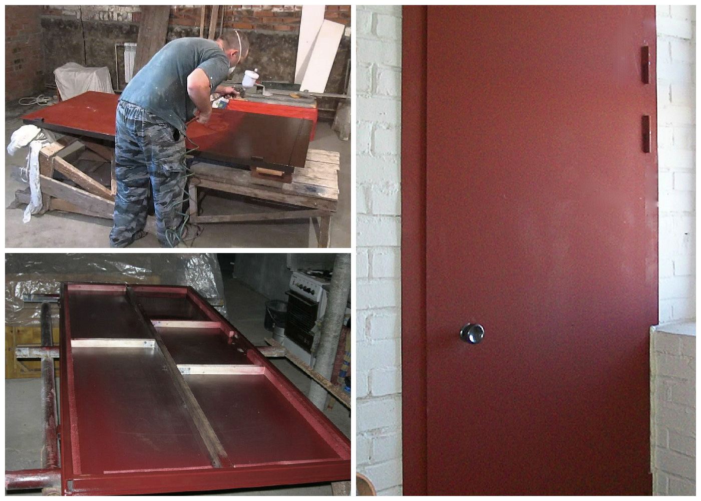 Перед тем, как покрасить железную дверь, ее поверхность проверяется на наличие сколов и вмятин, по необходимости производится их устранение. Вмятины выравниваются при помощи мастики, выступы стачиваются, а имеющиеся незначительные отверстия перекрываются при помощи массы под названием холодная сварка.