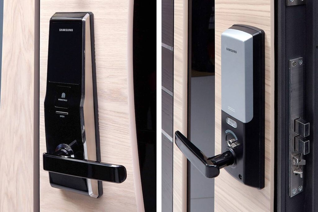 Электронный замок позволяет отпирать дверь с любой точки мира при необходимости, что полезно, например, при дистанционной сдаче жилья в аренду. Также управление замком осуществляется при помощи смартфона, пульта, пароля, отпечатка пальца или фейс ID.