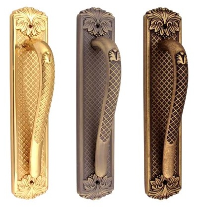 Для изготовления металлических ручек скоб для входных дверей производители используют чистые металлы вроде железа и алюминия и сплавы. Например, из латуни, бронзы, стали и других. Но наиболее популярными у потребителей являются ручки скобы из латуни. Высокий спрос на продукцию из этого материала обусловлен отличными эстетическими характеристиками. Кроме того, изделия из латуни приятные на ощупь и тёплые, что является важным фактором при выборе ручки скобы для входной двери. Также следует подчеркнуть надёжность такой фурнитуры и её долгий срок службы.