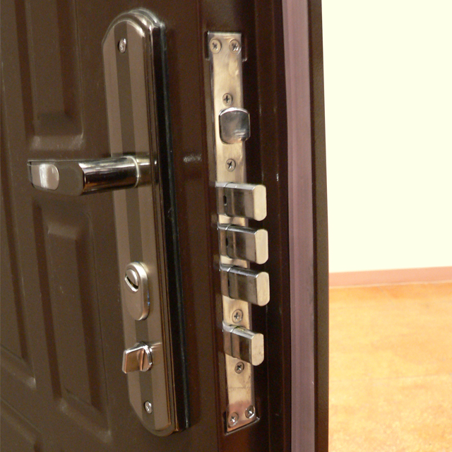 Самым распространёнными запирающими механизмами являются цилиндровые. Такие замки характеризуется большими возможностями. Так, если уделить внимание дополнительной защите, то такая система для металлических дверей сможет стать оптимальным вариантом в плане безопасности. В качестве вспомогательных элементов безопасности выступают бронированные пластины, которые фиксируются с внутренней стороны дверного полотна. Они позволяют защитить замок от высверливания цилиндра и его последующего выбивания. Такой тип запирающих механизмов является главным претендентом на звание лучшей и самой эффективной защиты входной двери.