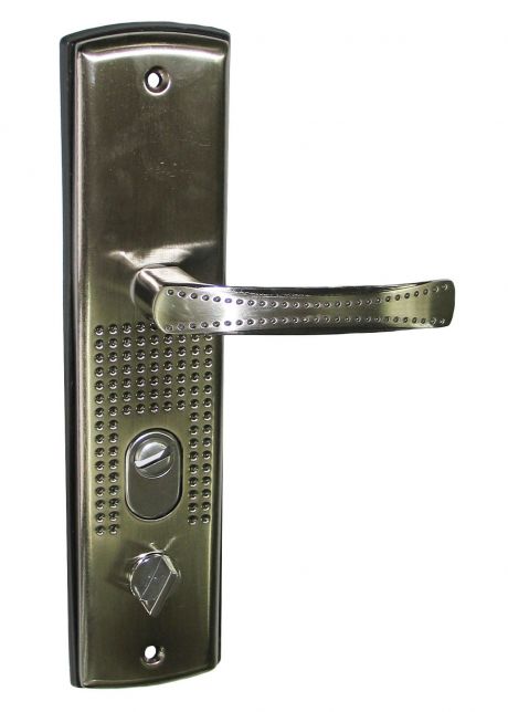 Китайские ручки отличает наличие специальной задвижки. На декоративной планке находится рукоятка для открытия, а также полость для скважины и задвижка. Это касается только внутренней части двери, поскольку задвижка на внешней ее части отсутствует. Вторая особенность – подкладка для накладок, выполняющих декоративную функцию. Она выполняет защитную функцию от проникновения в замок пыли. Это обусловлено спецификой китайских дверей, на которые устанавливается единый замок, который является одновременно и защелкой, и задвижкой.