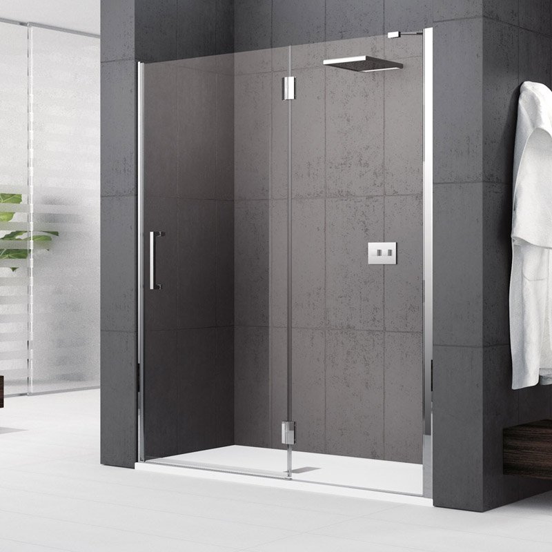 Складные. Также достаточно известная разновидность душевой двери, имеющая много вариантов ширины. Полотно состоит из двух половинок, которые во время открывания складываются наподобие книги за счет своего изгиба. Могут открываться как в левую, так и в правую сторону.