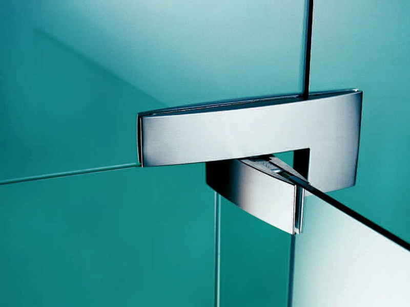 - Петли перекрытием — такая фурнитура ставится в саунах, ванных комнатах или душевых. Вход открывается под углом 180 градусов, часто такой механизм используется и для изогнутых образцов, которые хорошо смотрятся на фото;