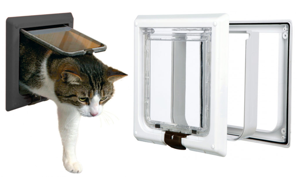 Это проем для кошки, к которому крепится дверка в виде шатающейся пластины, которая позволяет животному беспрепятственно входить и выходить. Некоторые модели дверей оснащены шпингалетами, магнитами, липучками и тд.