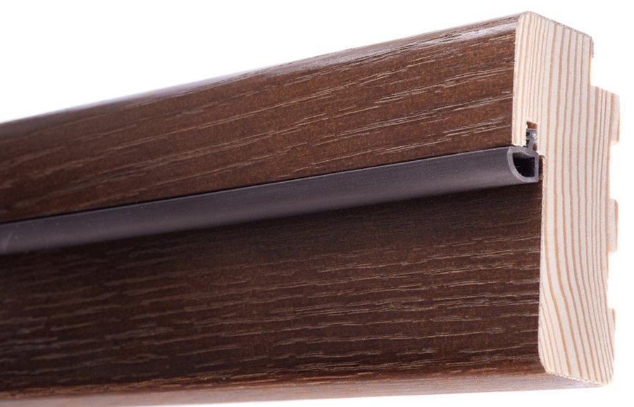 Для деревянных дверных конструкций чаще всего используют врезные уплотнители, практически незаметные после выполнения монтажа. Изделие обеспечивает хорошую звукоизоляцию. Поэтому по возможности специалисты рекомендуют использовать именно его. При этом если деревянная дверная конструкция рассохнется, уплотнительная вставка легко демонтируется без повреждения поверхностей.
