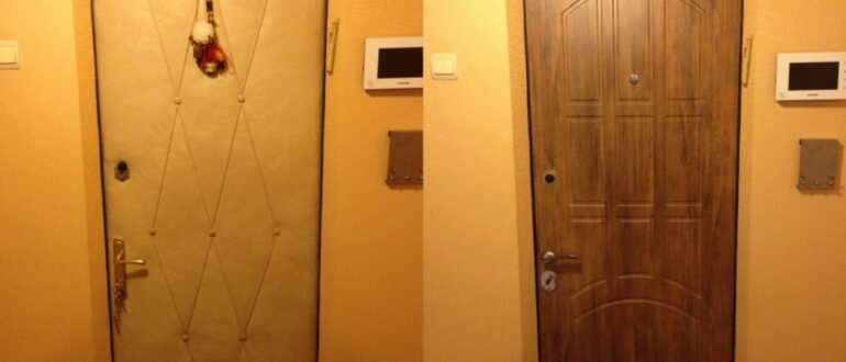 Стальные дверные блоки считаются самыми прочными и надежными. Однако требуется обязательно произвести отделку входных дверей изнутри квартиры или частного дома, чтобы они вписывались в общее интерьерное решение прихожей.