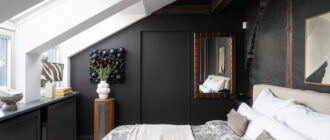 У этой мансардной квартиры в Стокгольме сложное, но интересное и эффектное пространство. Скошенные потолки,