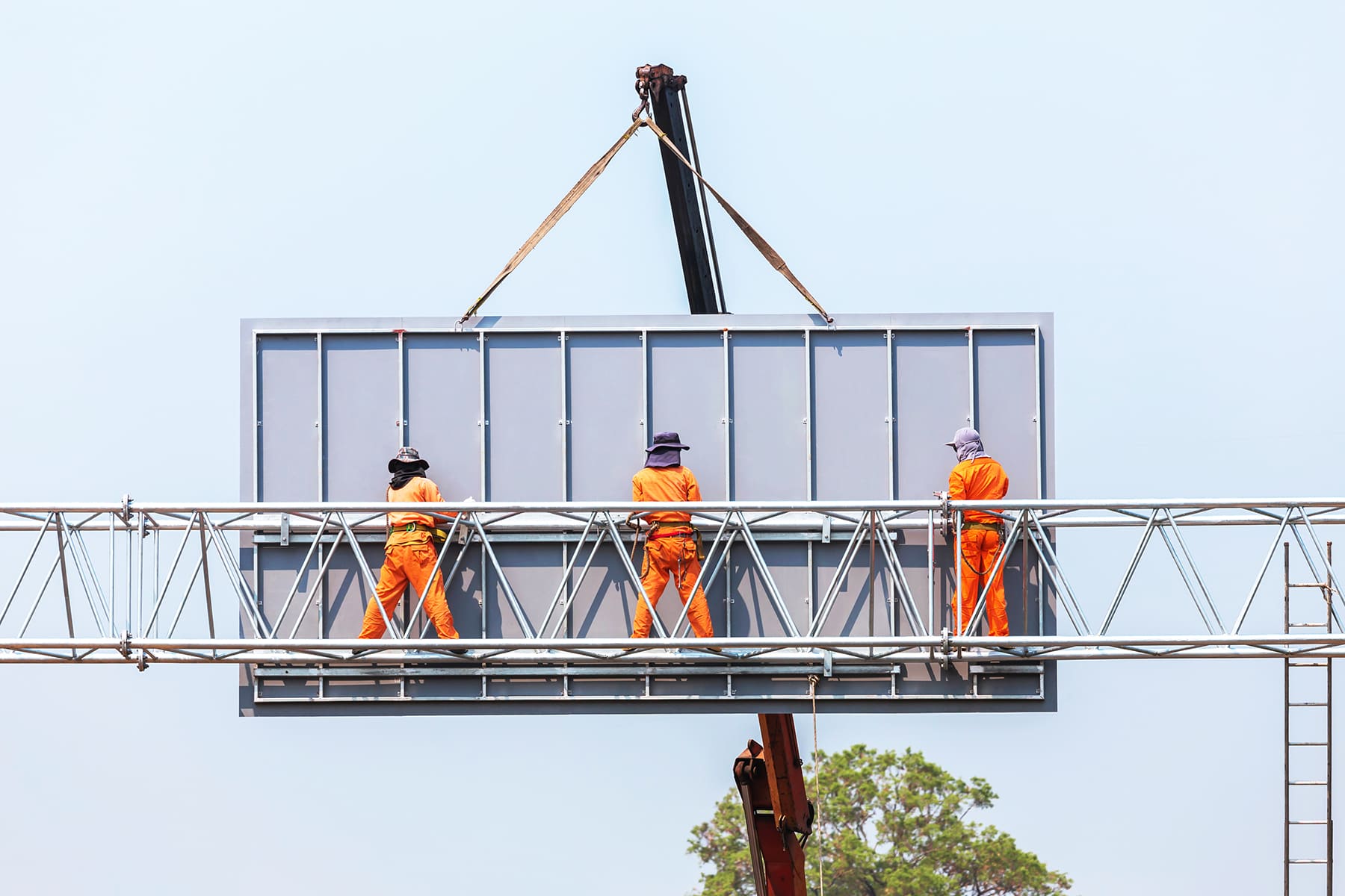 - Установка несущей конструкции: Монтаж начинается с установки несущей конструкции, которая должна быть надежно закреплена и выдерживать все нагрузки. Для высотных работ необходима специальная техника и квалифицированные специалисты.