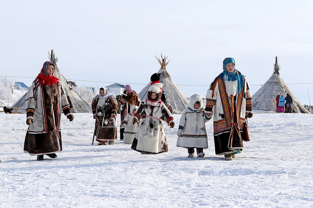 Сегодня на Ямале почти 19 тысяч коренных народов Севера (главным образом — ненцы) как и столетия назад перемещаются вместе со стадами оленей от пастбища к пастбищу, живут в чумах. Быть оленеводом до сих пор очень престижно, особенно, когда у тебя стадо в две-три тысячи голов, а вот быть чумработницей — женой оленевода и хозяйкой в жилище — тяжкий труд. В обязанности женщины входит, к примеру, поставить чум из десятков тяжеленных жердей, забросать его шкурами оленей. Причем, сделать это нужно не больше чем за 40 минут, иначе при морозе в минус 50 да с ветром вся семья просто замерзнет. Кроме того, женщине нужно шить одежду для всего многочисленного семейства, шубы, унты из шкур оленей. В обязанности чумработницы входит и разделка туш, приготовление еды.