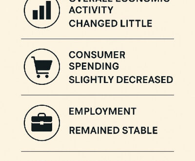 Согласно новому Бежевому отчёту Федеральной резервной системы, общая экономическая деятельность в США в последние месяцы практически не изменилась. Потребительские расходы показали незначительное снижение, занятость осталась стабильной, но признаки