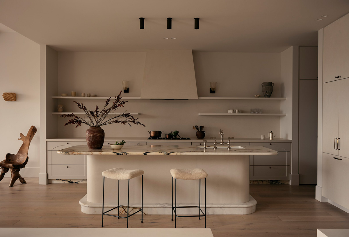 Мягкое лаконичное пространство в песочно-бежевых оттенках — так дизайнеры австралийской студии Handelsmann + Khaw представляют себе идеальный интерьер дома на побережье. Модные скруглённые углы и элементы средиземноморского стиля подходят к этому образу очень даже гармонично, добавляя пространству ещё больше стиля и нежности. Про такие интерьеры обычно говорят «оазис спокойствия и умиротворения»!