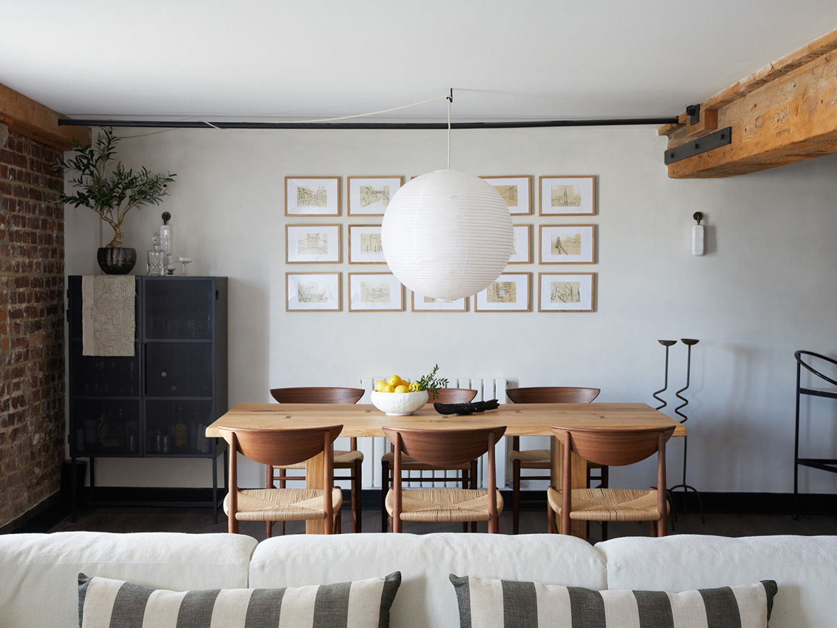 Возможно, этот лофт в Лондоне не может похвастаться солидной высотой потолков или просторными комнатами, но всё же несколько эффектных деталей в нём сохранились. Жильё расположилось в бывшем складском помещении, что заметно по массивным деревянным балкам, поддерживающим их металлическим колоннам и кирпичным стенам. С другой сторон мягкий спокойный декор в светлых натуральных тонах подобран в противовес грубым индустриальным элементам, что добавила много уюта и легкости пространствам. Enjoy!