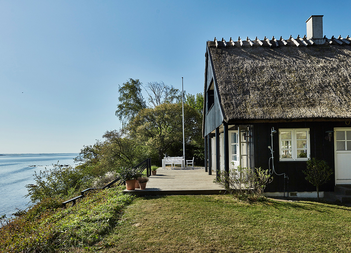 Этот летний домик на побережье в Дании выглядит действительно идиллично. Расположение на небольшой возвышенности прямо у воды с собственной лестницей к морю, терраса и множество окон для наслаждения видами, очаровательный традиционный фасад с соломенной крышей — разве этой не идеальный загородный домик для беззаботных каникул?! Коттедж довольно скромный по площади, но интерьеры кажутся лёгкими и свежими из-за обилия естественного света и морских видов за окном. Красота!