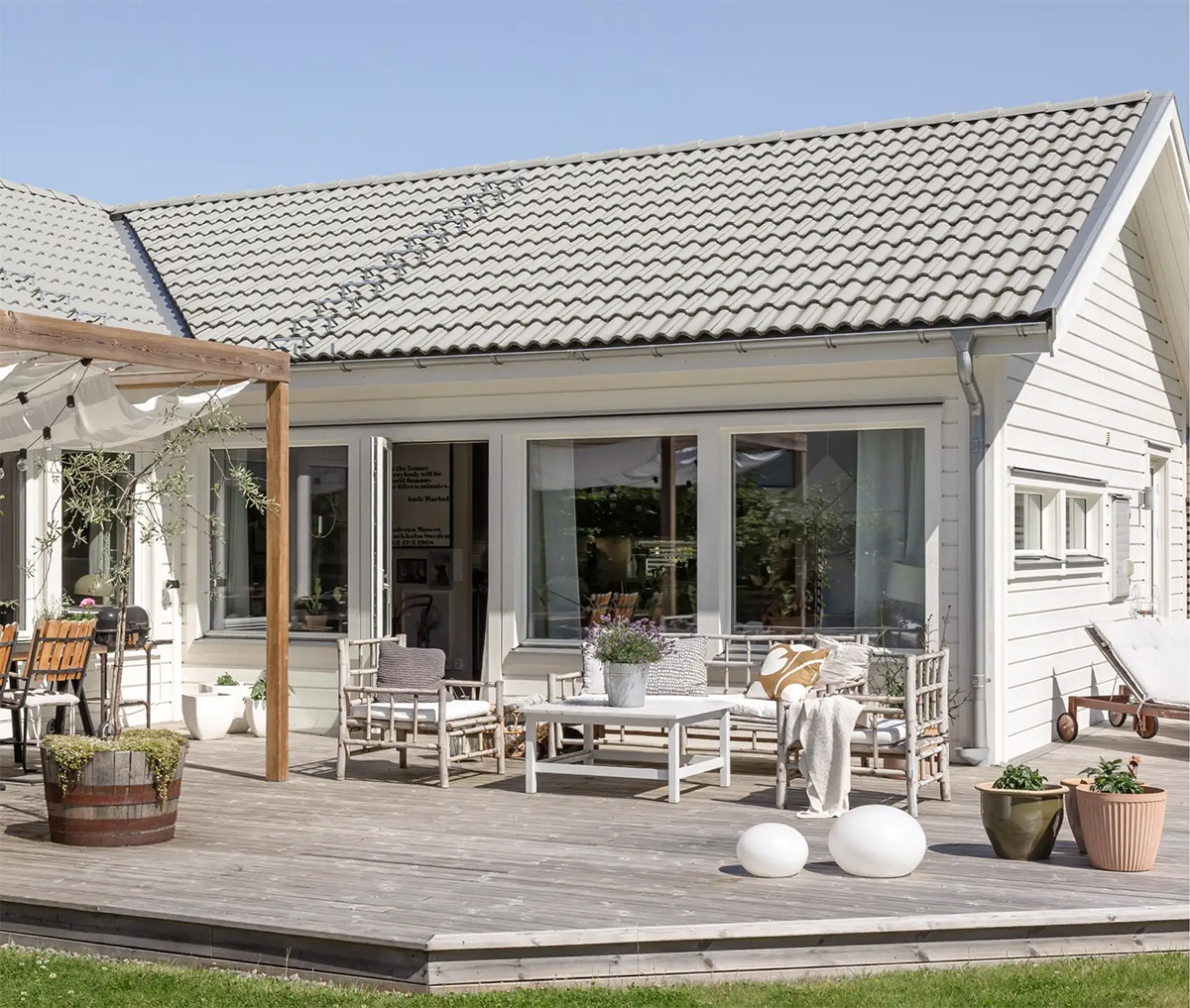 Лина и Карл-Густав долгое время жили в Гётеборге, но после рождения третьего ребёнка, семья осознала, что им нужен дом. Так как покупать старый дом или строить с ноля у них не было ни времени, ни желания, пара решила приобрести небольшой современный коттедж площадью 129 кв. м с участком недалеко от города. Здесь всё было как они мечтали: простая архитектура в один этаж, удобная социальная планировка и нежный скандинавский дизайн вне времени. Приятного просмотра!
