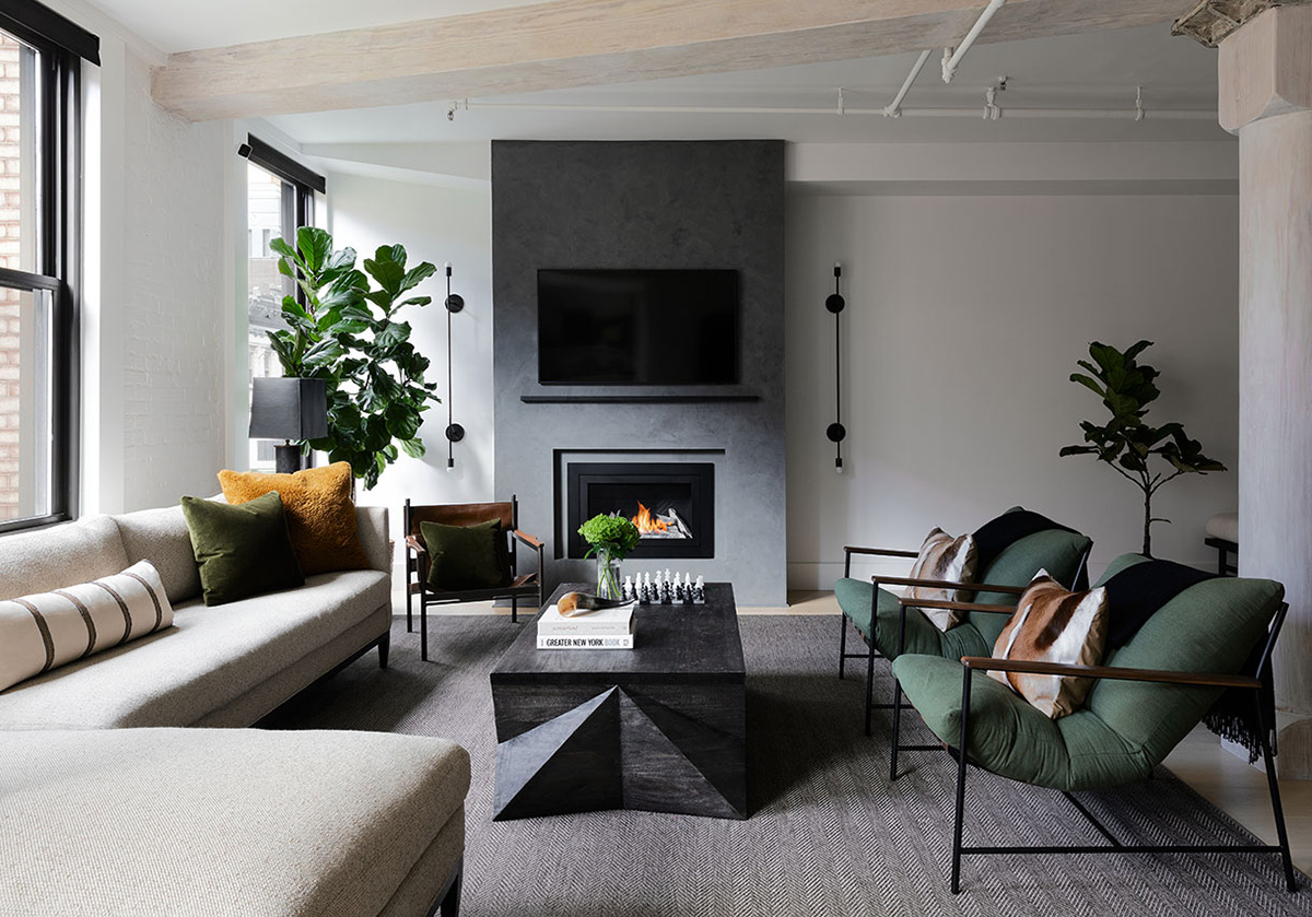 Когда нынешние хозяева впервые попали в этот лофт в престижном районе Нью-Йорка, их сразу пленило оригинальное индустриальное пространство и гибкость в декоре — интерьер представлял собой чистый лист с множеством возможностей. Подчеркивая архитектурные особенности помещений, пара решила остановиться на строгом современном дизайне с мужским характером, в котором преобладают чистые линии и контрастные тёмные акценты. Интерьер получился очень стильным и эффектным!