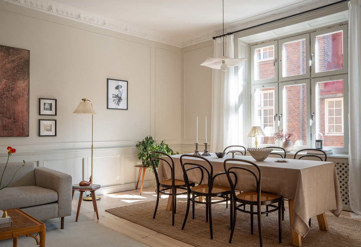Красивое пространство с классическими окнами и мягкая цветовая гамма, удачно подчеркивающая естественный свет в интерьере — эта квартира в Стокгольме совсем не претендует на звание самой оригинальной и стильной, но подкупает простыми и понятными приёмами декора. Подобный дизайн способствует спокойствию и полному расслаблению, а вневременные линии и пропорции обеспечивают наслаждение для глаз. То случай, когда лучше не усложнять.