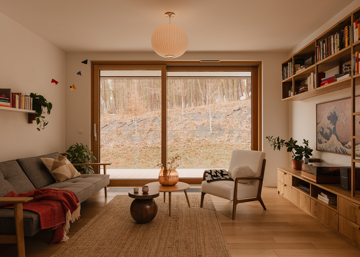 Жить в квартире, но чувствовать себя словно в загородном доме — такие эмоции дарит этот интерьер в польском Гданьске. Через большие раздвижные окна в гостиной можно не только наблюдать лесистые пейзажи вместе с меняющимися сезонами, но и легко очутиться в окружении самой матушки природы. Для интерьеров дизайнеры выбрали тёплую и уютную комбинацию современного дизайна и ноток ретро-стиля. Enjoy!