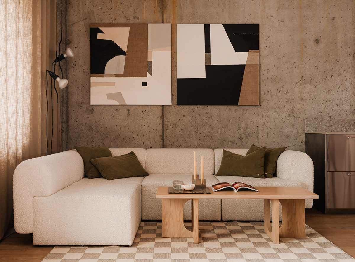 Комбинируя противоположности, дизайнеры польской OYKA Studio создали модный и в то же время уютный современный интерьер для молодой семьи в Познани. Бетонная стена в гостиной и кухонные шкафчики из нержавейки, кажется, задают индустриальный тон в интерьере, но изделия и натурального дерева и декор в скандинавском стиле успокаивают пространство и добавляют теплоты. В спальне взгляд привлекает волнистое изголовье кровати, а на стенах в детской красуются обои в клетку. Замечательный современный интерьер с изюминкой!