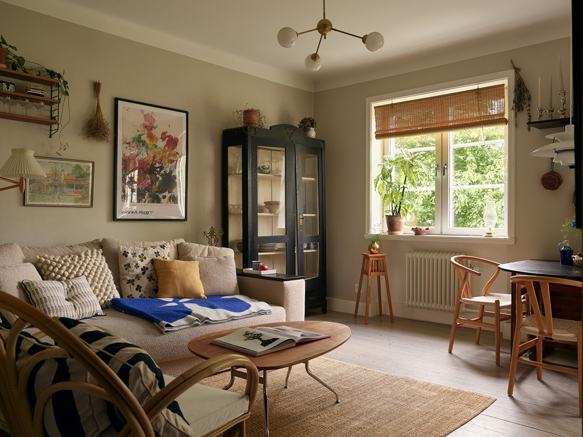 Глядя на буйную зелень прямо за окном и кантри нотки в дизайне может показаться, что эта маленькая квартира находится где-нибудь за городом. Но на самом деле расположилась она в самой столице Швеции, при совсем недалеко от центра. Просто район очень тихий и спокойный, с невысокими домами и обилием растительности — именно это и вдохновила дизайнеров на стиль оформления. Цветочные мотивы, натуральные материалы, висящая на крючках посуда и винтажные детали действительно создают настроение деревенского дома далеко от цивилизации. Enjoy!
