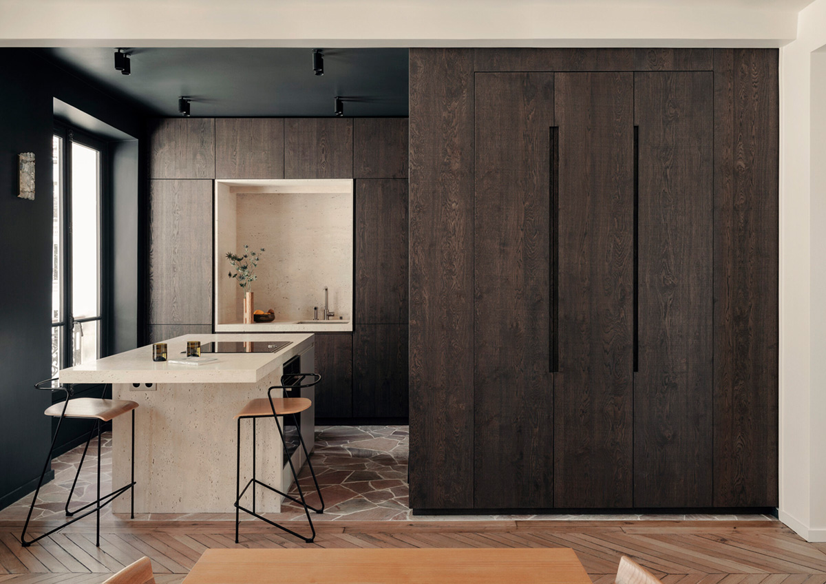 Этот интерьер в Париже — результат стараний дизайнера Baptiste Legue по адаптации к современной жизни квартиры в историческом доме, которая не знала ремонта многие годы. Оставив основу в виде паркета ёлочкой и классических окон нетронутой, автор проекта сначала переосмыслил конфигурацию комнат и пространства, а позже наполнил интерьеры стильными дизайнерскими решениями и оригинальными предметами мебели. Получилось эффектно и творчески!