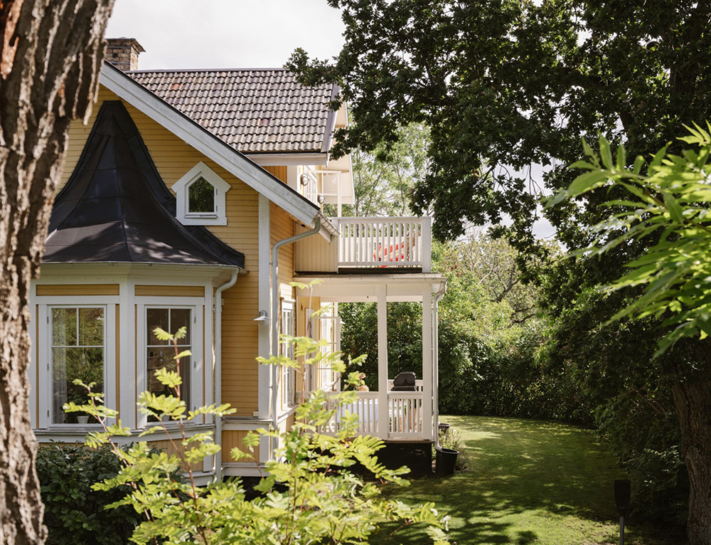 Традиционный скандинавские коттеджи не могут надоесть, ведь они являют собой воплощение вневременного идеала деревенских домиков и всегда выглядят словно с картинки. Особенно очаровательно смотрятся деревянные дома с желтым фасадом, который вызывает улыбку и тепло в душе даже от просмотра фотографий. Сегодня у нас как раз такой коттедж — старинный, желтый, утопающий в зелени. А ещё эти светлые, залитые солнцем интерьеры… Не дом, а мечта просто!