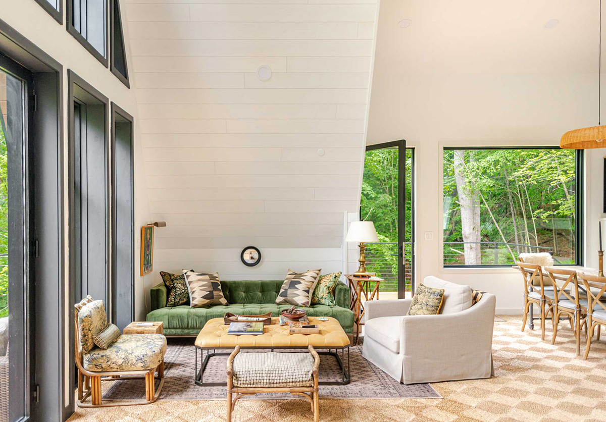 Дома в форме буквы «А» стали уже отдельным самобытным явлением в американской архитектуре. Зачастую эти деревянные коттеджи расположены в лесу, имеют большую площадь внешнего остекления и интересное многоуровневое пространство внутри. Этот дом в горном регионе Catskills в штате Нью-Йорк как раз соответствует всем этим критериям и предлагается в аренду всем желающим на сайте Air B&B. Отличный вариант для уединения на несколько дней посреди нетронутой природы!