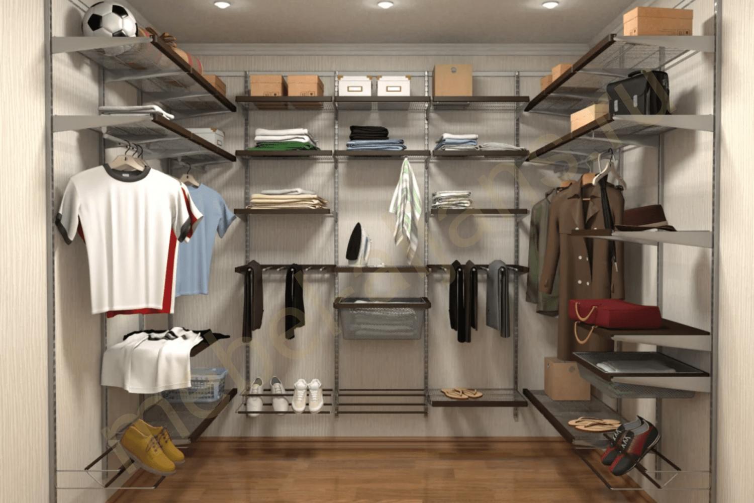 После завершения установки каркаса и коммуникаций устанавливаются полки, штанги для одежды, ящики и другие элементы хранения. Важно обеспечить надежное крепление всех элементов и удобство их использования.