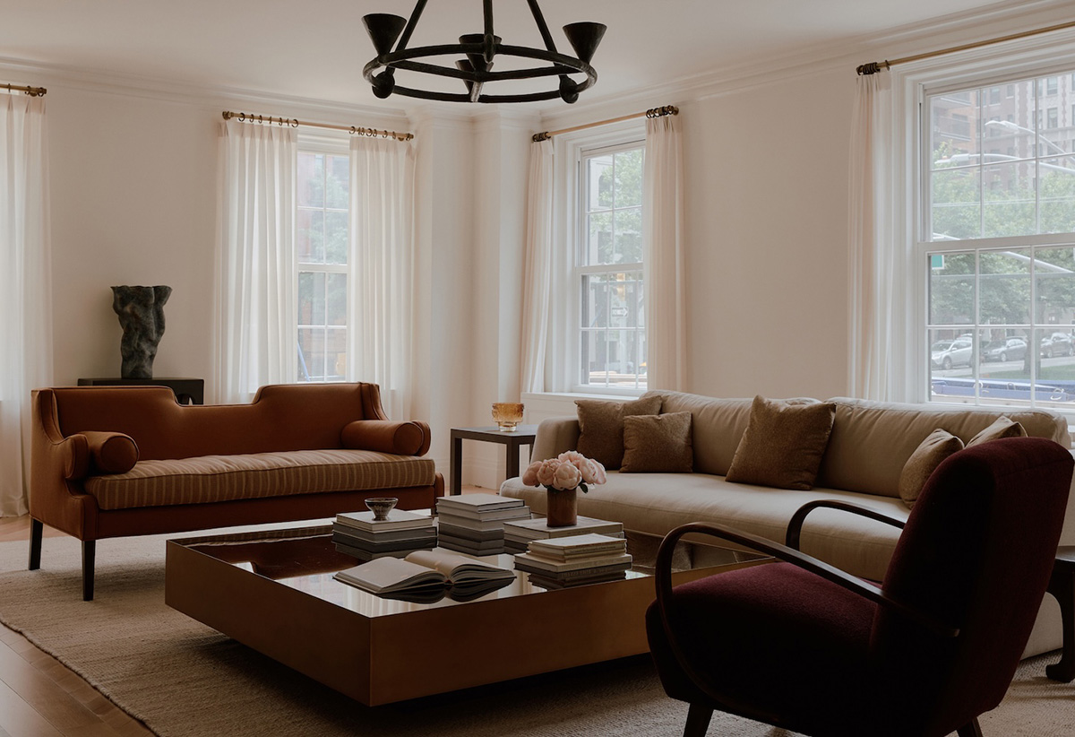 И хотя интерьеры этого таунхауса в Нью-Йорке выполнены в лаконичном современном ключе, великолепие довоенной архитектуры дома всё ещё чувствуется в объемах и некоторых декоративных деталях. Дом принадлежит молодой семье, которая мечтала о более открытом и наполненном светом пространстве, отвечающем все современным требованиям комфорта, но не лишённым характера исторического жилья. Используя благородные материалы, декор вне времени и мягкие оттенки дизайнеры смогли создать эстетический современный оазис посреди большого города.