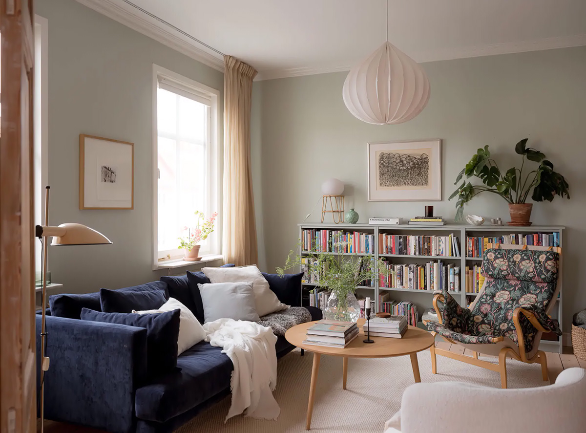 В этой квартиры в Гётеборге как в бабушкином доме в деревне — царить очень душевная и приятная обстановка. Великолепная винтажная дверь из натурального дерева и кирпичная стена задают тон интерьеру, придавая нотки загородной жизни. Но не менее важными являются очаровательные детали в виде нежных цветочных обоев в спальне и коридоре, а также лёгкий однотонный текстиль, красиво разбросанный по всей квартире. Замечательный интерьер!